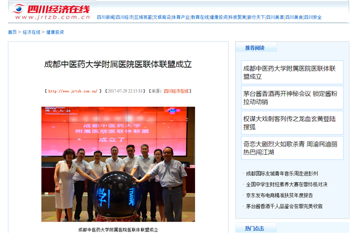 四川经济在线成都7月29日讯 Beat365中文官方网站附属医院医联体联盟7月29日在蓉宣告正式成立并发出成都共识。据悉,该联盟为全国首个以中医药资源为基础而建立的医联体联盟,目前共45家四川省内外医院加入联盟。