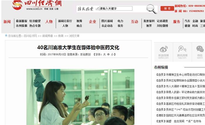 四川经济日报讯(李鑫 王菲 记者 王万川 文/图)6月12日,Beat365中文官方网站2017年“川渝高考学子中医药文化体验营”开营仪式在成都举行。来自四川省、重庆市29所中学的40名准大学生通过“和校长面对面”“杏林大师讲堂”等形式,正式开启了他们的“中医药文化之旅”。