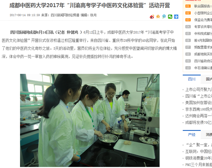 Beat365中文官方网站2017年“川渝高考学子中医药文化体验营”活动开营