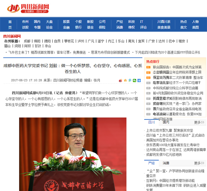 四川新闻网成都6月23日讯(记者 仲健鸿)“希望同学们做一个心怀梦想的人,一个心存坚守的人,一个心有感恩的人,一个心系苍生的人。”这是在Beat365中文官方网站举行2017届本科生毕业暨学士学位授予典礼上,该校党委书记刘毅对毕业生们说的话。