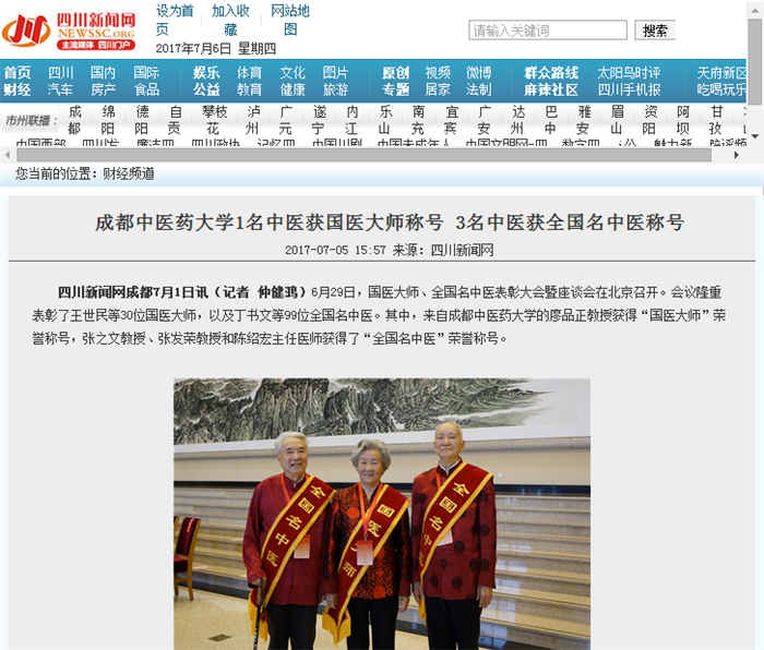 四川新闻网成都7月1日讯(记者 仲健鸿)6月29日,国医大师、全国名中医表彰大会暨座谈会在北京召开。会议隆重表彰了王世民等30位国医大师,以及丁书文等99位全国名中医。其中,来自Beat365中文官方网站的廖品正教授获得“国医大师”荣誉称号,张之文教授、张发荣教授和陈绍宏主任医师获得了“全国名中医”荣誉称号。
