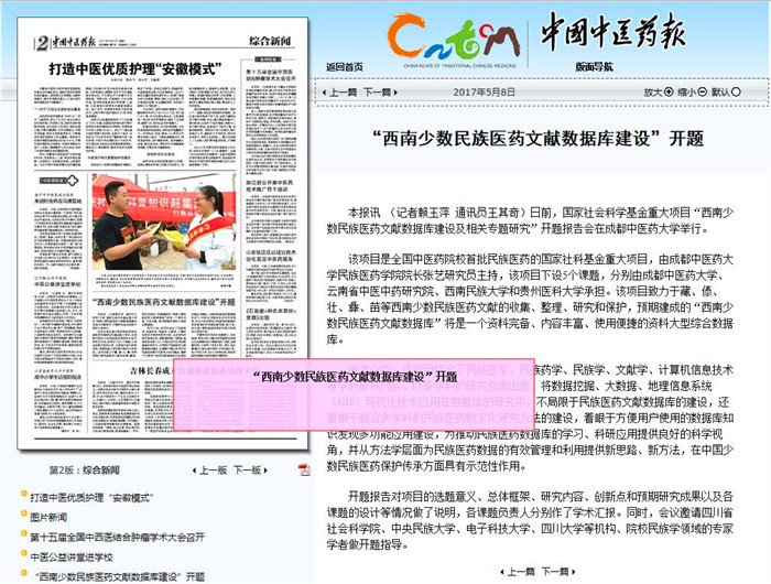 张艺介绍,该项目结合了民族医学、民族药学、民族学、文献学、计算机信息技术等学科研究内容,以多学科的研究视角出发,将数据挖掘、大数据、地理信息系统(GIS)可视化技术应用在数据库的研究中,不局限于民族医药文献数据库的建设,还着眼于融合多学科的民族医药数字化研究方法的建设,着眼于方便用户使用的数据库知识发现多功能应用建设,为推动民族医药数据库的学习、科研应用提供良好的科学视角,并从方法学层面为民族医药数据的有效管理和利用提供新思路、新方法,在中国少数民族医药保护传承方面具有示范性作用。
