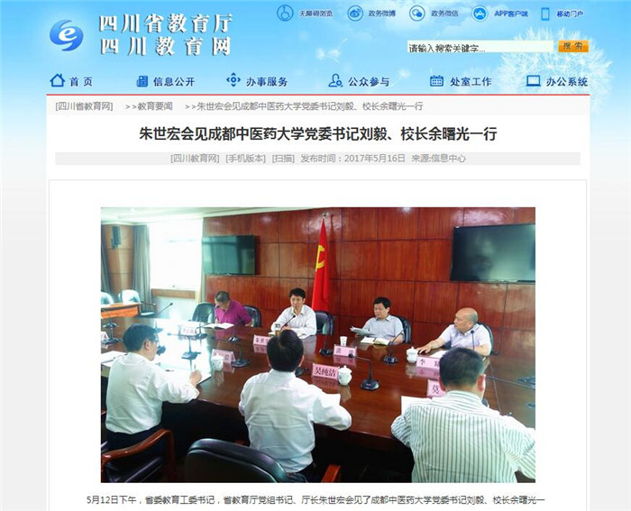 在听取刘毅、余曙光关于新一届领导班子工作思路汇报后,朱世宏对该校新一届领导班子整体工作给予了充分肯定。朱世宏指出,当前,面对新的形势、新的任务,学校新一任领导班子将肩负更加重要的历史使命,将承担更加重大的历史责任。中医药发展已上升为国家战略,党的十八大、十八届三中全会对中医药发展作出了重要部署,希望抓住国家创建“双一流”和中医药事业振兴发展的难得机遇,紧紧围绕省委治蜀兴川的决策部署,充分发挥中医药的独特优势,进一步开拓创新、锐意进取,努力把各项工作推向新的水平。同时,省教育厅也将一如既往支持学校改革发展。