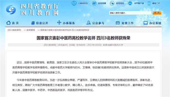 国家首次表彰中医药高校教学名师 四川3名教师获殊荣
