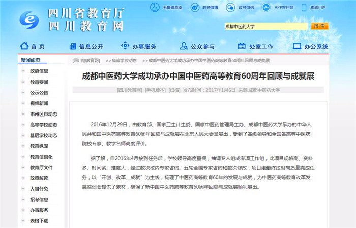 据了解,自2016年4月接到任务后,学校领导高度重视,抽调专人组成专项工作组,此项目规格高、资料多、时间紧、难度大,经过数次校内专家咨询、五轮全国专家咨询和数次修改,项目组最终按时高质量完成任务,以“开创、改革、成就”为主线,梳理了中医药高等教育60年的发展与成就,为中医药高等教育改革发展座谈会提供了素材,确保了新中国中医药高等教育60周年回顾与成就展顺利展出。