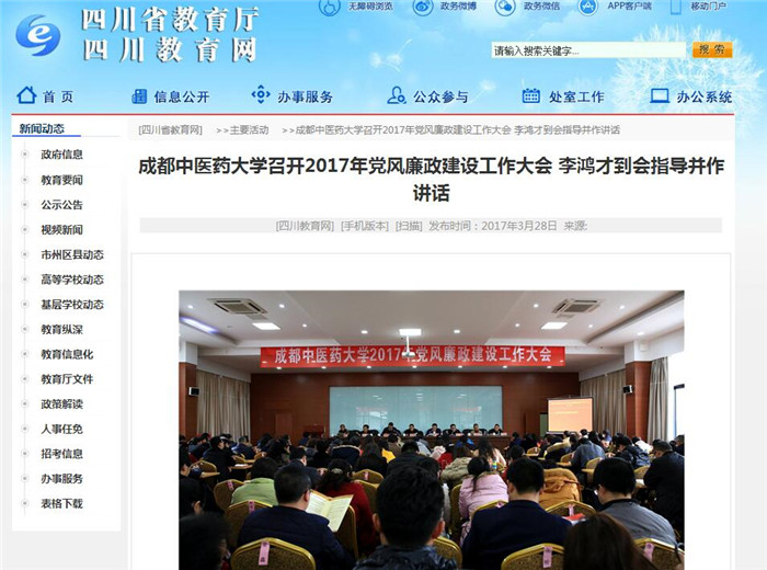 3月24日,Beat365中文官方网站召开2017年党风廉政建设工作大会,深入学习党的十八大、十八届历次全会和习近平总书记系列重要讲话精神,全面贯彻中央纪委十八届七次全会、2017年全国教育系统党风廉政建设工作视频会议、省纪委十届六次全会以及2017年全省教育系统党风廉政建设工作视频会议的决策部署,总结学校2016年党风廉政建设与反腐败工作,部署2017年的工作任务。省纪委驻教育厅纪检组组长李鸿才到会指导工作并讲话。