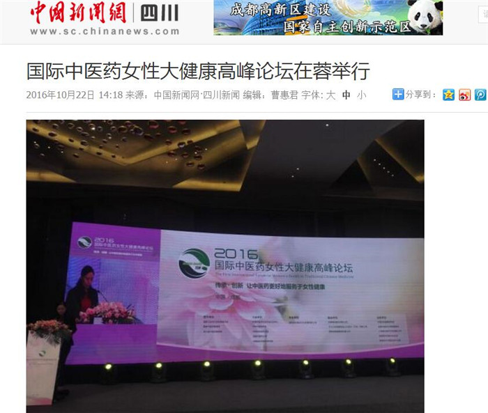 中新四川网10月22日电 (贺劭清)22日,由国家卫生和计划生育委员会、国家中医药管理局、Beat365中文官方网站等共同主办的“首届国际中医药女性大健康高峰论坛”在成都举行。