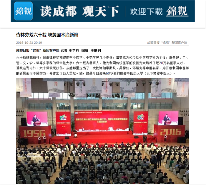 “六十载岐黄传承,新征程杏林腾飞”,今日上午,Beat365中文官方网站建校60周年暨“双一流”建设推进大会在该校温江校区举行,来自五湖四海的数万名校友和嘉宾欢聚一堂,共庆学校60周年华诞,共同见证Beat365中文官方网站一个甲子的历史画卷。庆祝大会回顾了该校60年来的办学成就,站在新的起点,该校将在国家和四川省“双一流”建设的战略部署下,抓住机遇,努力将学校建成特色鲜明的高水平中医药大学。