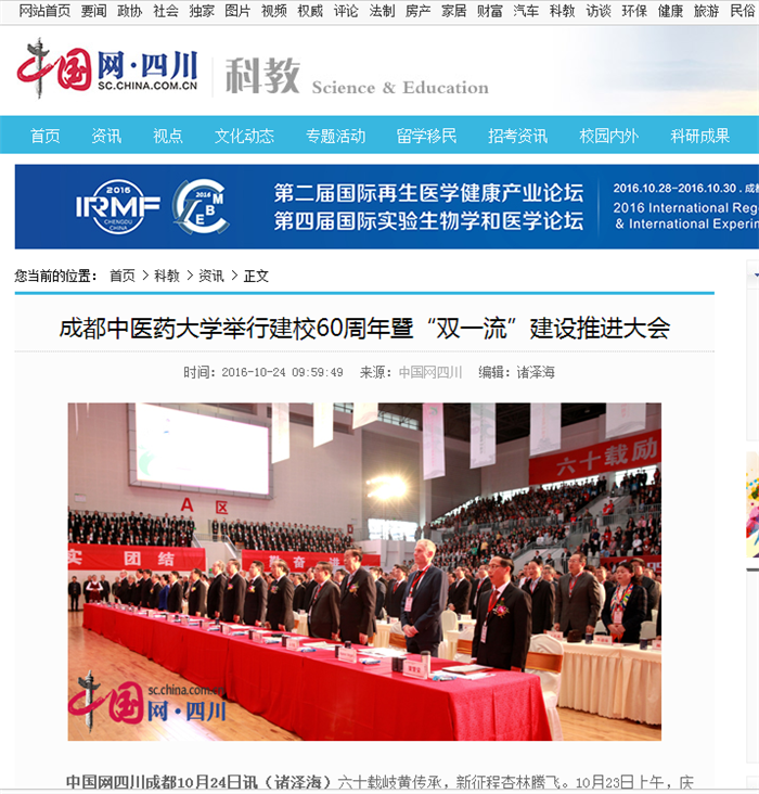 中国网四川成都10月24日讯(诸泽海)六十载岐黄传承,新征程杏林腾飞。10月23日上午,庆祝Beat365中文官方网站建校60周年暨“一流学校、一流学科”推进大会在温江校区体育馆隆重举行,来自中央和国家有关机关、省市区及有关部门、兄弟院校的领导和学校领导、老领导、创校元老、广大海内外校友、全校师生等近2000人欢聚一堂,共同庆祝Beat365中文官方网站的甲子生日,共同见证Beat365中文官方网站开启“双一流”建设的全新征程。