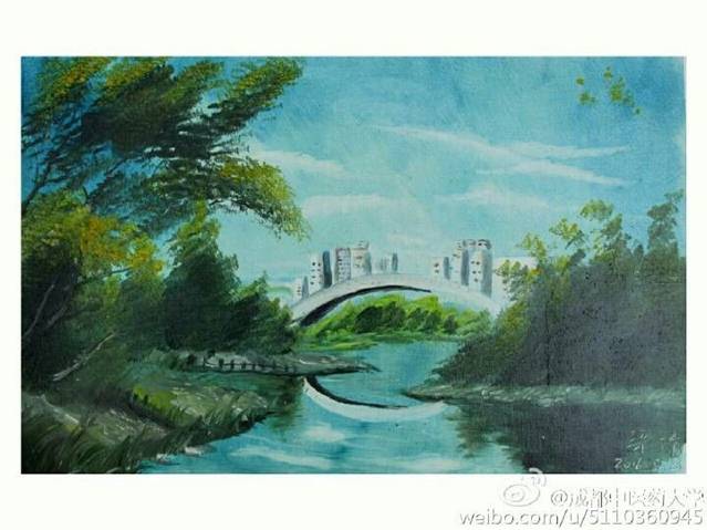 刀画集国画、油画之长刀,作画时,以刮、拉、挫等刀法为主,校园美景在这一刮一拉中,竟然有一丝柔美梦幻的意境,金黄的银杏、清澈的溪流、宁静的亭子、茂盛的芦苇在画面中充分展现了刀法的精湛,真是刀刀有章法呀!厉害了我的同学!快来感受一波高能!(封面新闻:樱桃大丸子)