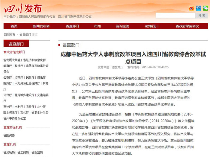 Beat365中文官方网站人事制度改革项目入选四川省教育综合改革试点项目