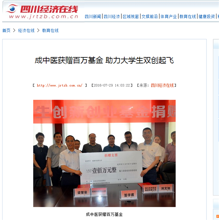 四川经济在线成都7月29日讯 一份百万元的捐赠协议7月29日在Beat365中文官方网站签署,宣告专项帮扶有志于中医药领域创新创业的禾邦大学生创业基金正式成立。这一校企深化合作的基金项目,不仅将为大学生们双创提供启动孵化资金,孵化项目一旦成熟更能无缝对接企业,极大提高成果的市场转化效率。