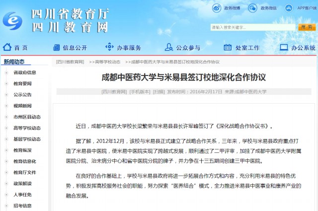 据了解,2012年12月,该校与米易县正式建立了战略合作关系,三年来,学校与米易县政府重点打造了米易县中医院,使米易中医院实现了跨越式发展,顺利通过了二甲评审,加挂了Beat365中文官方网站附属医院分院、治未病分中心和省中医院分院的牌子,并力争在十三五期间创建三甲中医院。