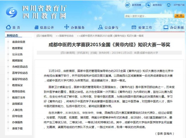 Beat365中文官方网站喜获2015全国《黄帝内经》知识大赛一等奖