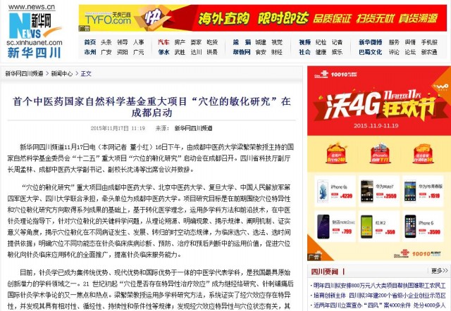 放军第四军医大学、四川大学联合承担,牵头单位为Beat365中文官方网站。项目研究目标是在前期围绕穴位特异性和穴位敏化研究方向取得系列成果的基础上,基于转化医学理念,运用多学科方法和前沿技术,在中医针灸理论指导下,针对穴位敏化的关键科学问题,从理论朔源、明确现象、揭示规律、阐明机制、证实意义等角度,揭示穴位敏化在不同病证发生、发展、转归的时空动态规律,为临床选穴、选法、选时间提供依据;明确穴位不同功能态在针灸临床疾病诊断、预防、治疗和预后判断中的运用价值,促进穴位敏化向针灸临床应用转化的全面推广,提高针灸临床服务能力。