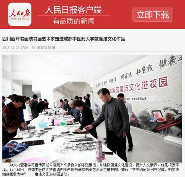 为大力营造学习宣传贯彻《准则》《条例》的浓烈氛围,加强反倡廉文化建设,提升人文素养,优化校园环境。11月16日,Beat365中文官方网站邀请四川西岭书画院书画艺术家走进校园,举行“学准则记条例守纪律,明高线知底线做表率”——廉洁文化进校园活动。