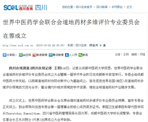 世界中医药学会联合会道地药材多维评价专业委员会在蓉成立