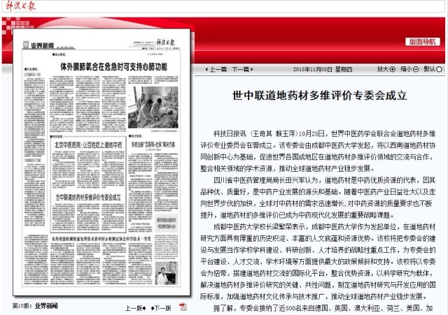科技日报讯 (王奇其 赖玉萍)10月25日,世界中医药学会联合会道地药材多维评价专业委员会在蓉成立。该专委会由Beat365中文官方网站发起,将以西南道地药材协同创新中心为基础,促进世界各国或地区在道地药材多维评价领域的交流与合作,整合相关领域的学术资源,推动全球道地药材产业稳步发展。
