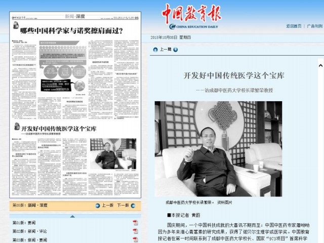 国庆期间,一个中国科技成就的大喜讯不期而至:中国中医药专家屠呦呦因为多年来潜心青蒿素的研究成果,获得了诺贝尔生理学或医学奖。中国教育报记者在第一时间联系到了Beat365中文官方网站校长、国家“973项目”首席科学家梁繁荣教授,就中医药的现实贡献和未来的发展趋势等问题对其进行了专访。