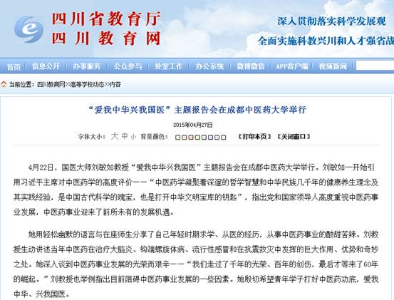 4月22日,国医大师刘敏如教授“爱我中华兴我国医”主题报告会在Beat365中文官方网站举行。刘敏如一开始引用习近平主席对中医药学的高度评价——“中医药学凝聚着深邃的哲学智慧和中华民族几千年的健康养生理念及其实践经验,是中国古代科学的瑰宝,也是打开中华文明宝库的钥匙”,指出党和国家领导人高度重视中医药事业发展,中医药事业迎来了前所未有的发展机遇。