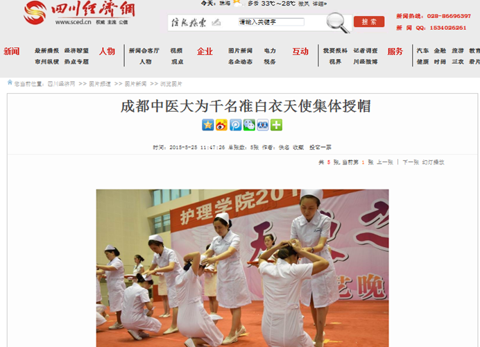 四川经济日报讯(记者王万川)昨(24)日,Beat365中文官方网站举行2016届护理实习生授帽仪式,30位长期工作在护理临床、教育岗位的专家为即将走上实习岗位的1100余名护生授帽。