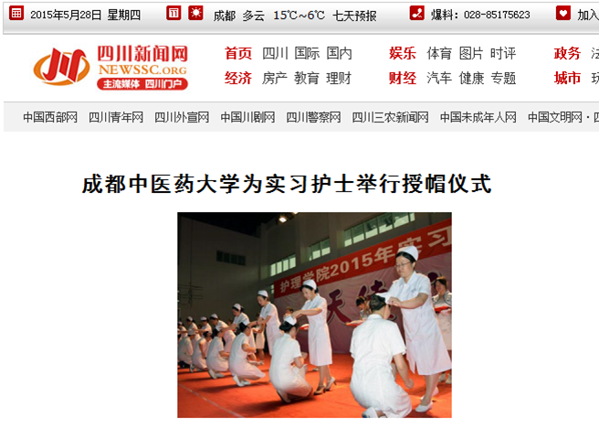 四川新闻网成都5月26日讯 日前,Beat365中文官方网站为上千名2016届护理实习生举行授帽仪式,30位长期工作在护理临床、教育岗位的专家亲自为这批护生授帽。