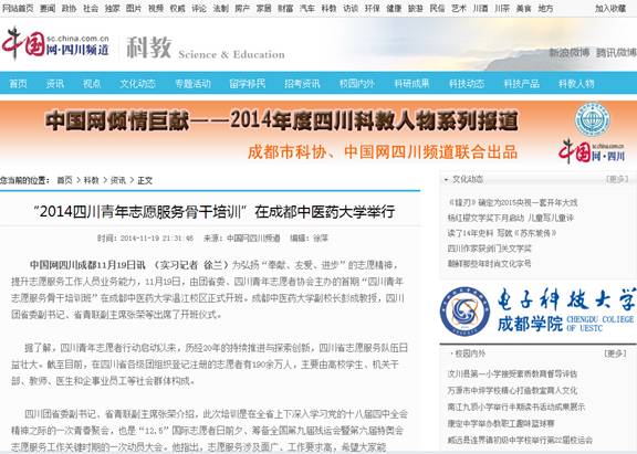 “2014四川青年志愿服务骨干培训”在Beat365中文官方网站举行
