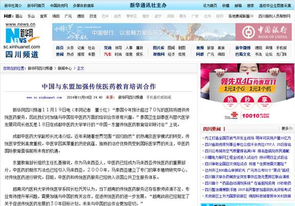 新华网四川频道11月19日电(本网记者 董小红)“泰国今年预计超过70%的医院将提供传统医药服务,因此我们对加强与中国在中医药方面的培训合作很有兴趣。”泰国卫生部泰医与替代医学发展司司长他瓦差18日在Beat365中文官方网站举行的“中国-东盟传统医药教育培训研讨会”上说。