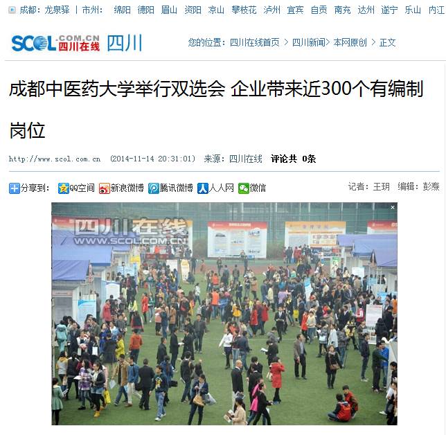 本次双选会共有311家医疗卫生机构,包括广东省中医院、云南省中医院等十多家省级中医医院;太极集团、地奥集团、山东东阿阿胶、昆明中药厂、四川省中药材公司等116知名家医药企业;综合类企事业单位70家,包括组团人才引进的大竹县委组织部、合江县人社局等。