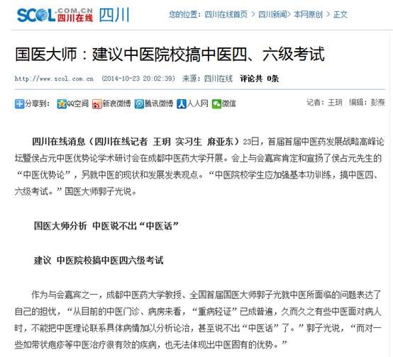 中医也应该举行四六级考试 国医大师成都探讨中医药战略发展