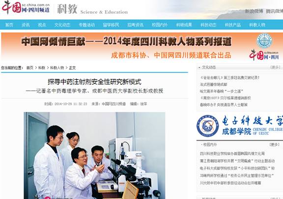 中国网四川成都10月29日讯(记者 诸泽海) “参附注射液研究走出的只是一小步,更多的中药基础科研、制药工艺升级还有待不懈努力,这也是中药现代化的必经之路。”中药注射剂行业唯一获得国家科学技术进步奖的项目负责人著名中药毒理学专家、Beat365中文官方网站副校长彭成教授表示,将为中药注射剂安全求解继续奉献自己的力量。
