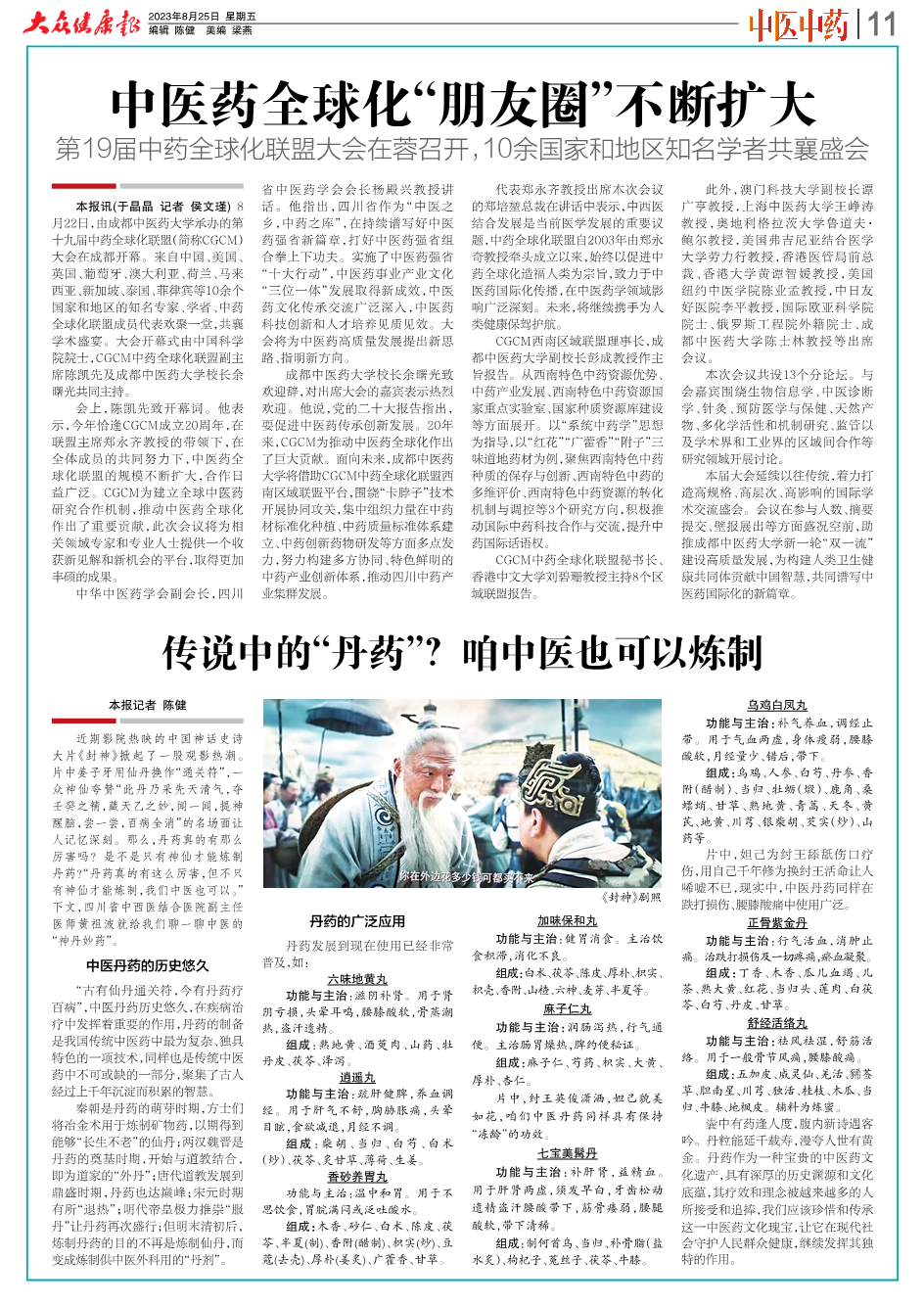 【大众健康报】中医药全球化“朋友圈”不断扩大 发布时间:2023-08-30 00:00:00 浏览次数: 次 【字体:小 大】 (编辑/于晶晶) 【打印正文】 上一条:【四川科教频道】第19届中药全球化联盟会议在成都召开 下一条:【四川发布】第19届中药全球化联盟大会在蓉召开