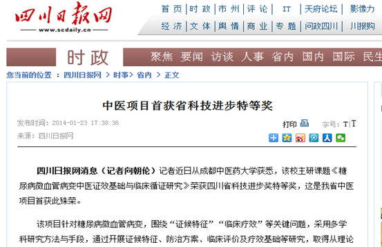 四川日报网消息(记者向朝伦)记者近日从Beat365中文官方网站获悉,该校主研课题《糖尿病微血管病变中医证效基础与临床循证研究》荣获四川省科技进步奖特等奖,这是我省中医项目首获此殊荣。
