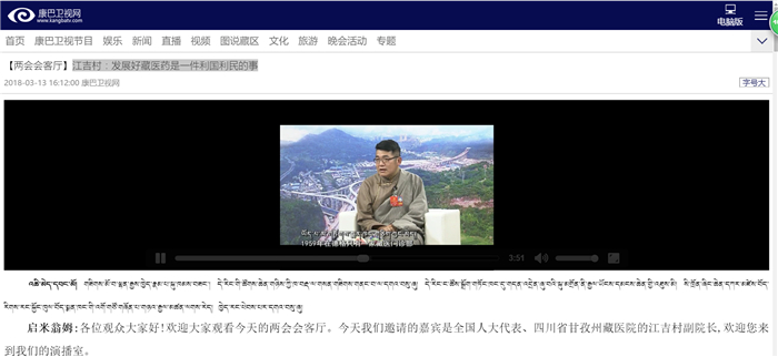 【媒体关注】康巴卫视网:江吉村 发展好藏医药是一件利国利民的事 发布时间:2018-03-14 15:29:00 浏览次数: 次 【字体:小 大】 时间:2018年03月13日 来源:康巴卫视网 链接:http://m.kangbatv.com/news/zqxw/201803/t20180313_3799717.html?from=timeline&isappinstalled=0 内容: 江吉村 发展好藏医药是一件利国利民的事 【打印正文】 上一条:【媒体关注】央广网:郭玫 破解“大资源小产业”,让甘肃中医药走进“一带一路” 下一条:【代表风采】优秀校友、江吉村代表:传承民族文化,服务群众健康