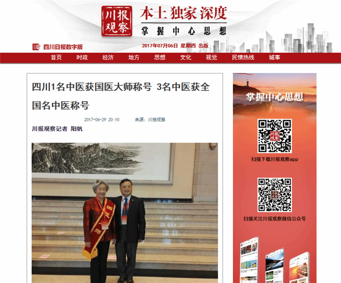 四川1名中医获国医大师称号 3名中医获全国名中医称号