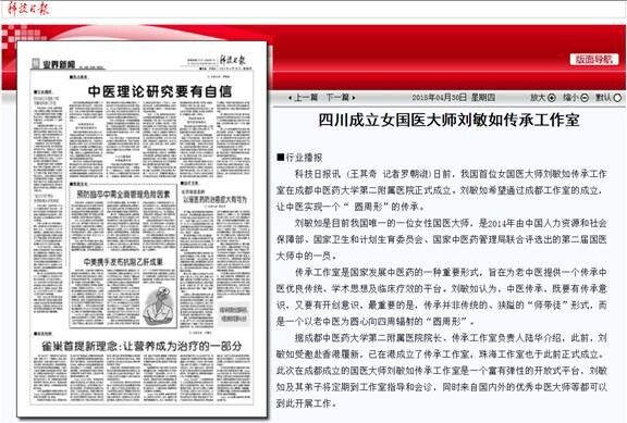 四川成立女国医大师刘敏如传承工作室