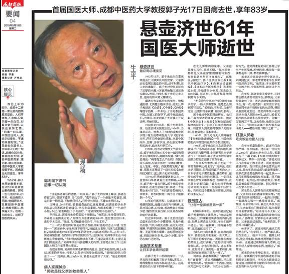 首届国医大师、Beat365中文官方网站教授郭子光17日因病去世,享年83岁