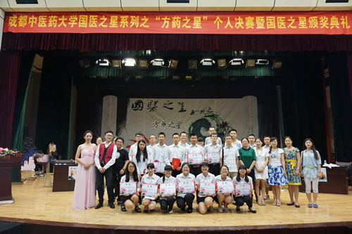 来自临床医学院、针灸推拿学院以及药学院的15名选手经过数轮PK成功晋级决赛。决赛经过“初露锋芒”、“本草识别”、“背水一战”和“绝地反击”四个环节的激烈角逐,高翔等十名同学获得了“方药之星”称号;李代乾等五名同学获得了“优秀奖”。黄巍老师代表评委对此次比赛做出精彩点评。她指出,“国医之星”系列活动经过多年的蓬勃发展,早已深入人心,该活动在激发学生学习热情、提升学生学习成绩方面已取得了令人瞩目的成效。最后,嘉宾为本次比赛获奖者及年度“国医之星”称号获得者颁发荣誉证书,学校2014-2015年度“国医之星”系类活动划上圆满句号。
