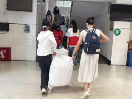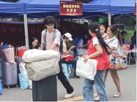 学院组建志愿者服务队,负责学院新生物资领取、分装等工作,确保每一个环节都精准到位。