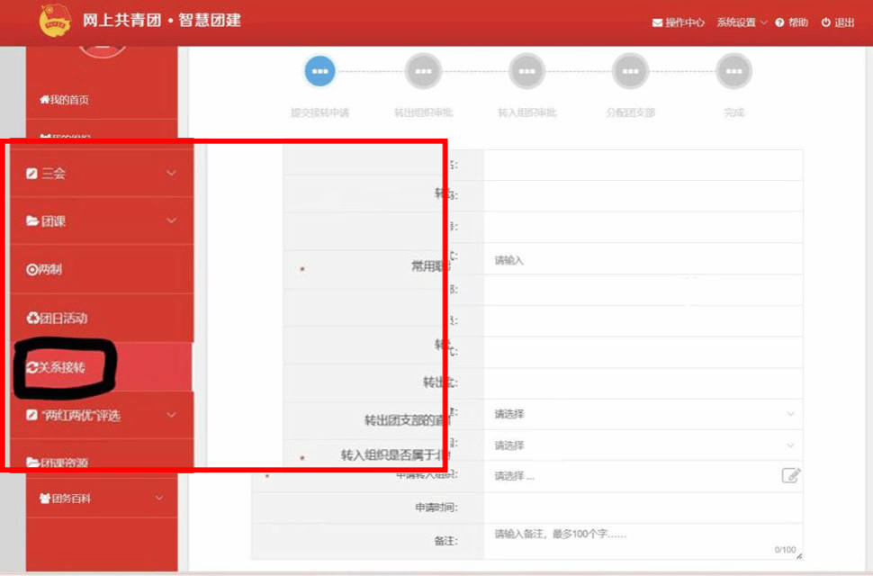 2.发起团组织关系转接申请