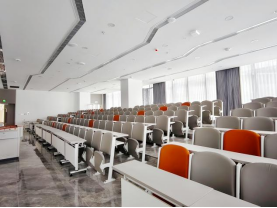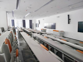 踏入现代化阶梯教室,整齐的座椅如琴键般排列,专业声光系统让知识传递“声入人心”。超大视野的空间设计,让每一堂课都如沉浸式剧场,老师的讲解清晰入耳,知识的脉络立体可见,带你在学术的海洋里畅快遨游。