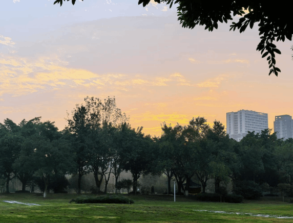 照片解说:这张图片展示了成中医太极大道清晨时的景象。晨雾还在林间缱绻,给树木披上朦胧的纱衣,赶路人低头不语,仿佛前路仍有迷茫。但抬头望去,树隙间已然透来金黄的曦光,将天际晕染成温暖的画布。那光,是破晓的希望,是穿透迷雾的力量。就像人生,纵使此刻身处雾霭,只要心怀热忱向前走,不畏当下,继续前行,越过树隙,阳光明媚。这树与光的对话,便是对每一个成中医人“前行必有曙光”的鼓励。