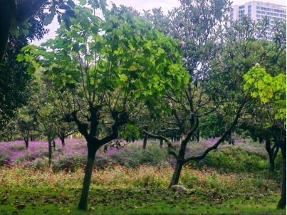 照片解说:广袤草坪上的参天大树如绿色穹顶,像一个守望者,默守着每一个学子,远处的教学楼在绿意中若隐若现,尽显自然与学府的诗意交融。树木枝桠交错成天然画框,紫色、红色的花朵点缀其间,繁花与叶影共舞,生机漫溢,像是中药植物园里的调色盘,诉说着校园里藏着的草药芬芳。这里的每一处景致都藏着故事,等待新生们用脚步去丈量,用心去发现挖掘校园角落的温柔与热烈,让一草一木成为青春记忆的注脚。