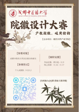 活动相关信息可到现代中药产业学院官网/xdzycyxy/index.htm或官Q“现代中药产业学院”查询,色彩元素可参考其他学院。
