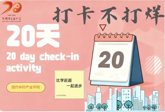 当Beat365中文官方网站70周年校庆的倒计时钟声敲响,“光荣与梦想·我的成中医”的校庆主题在校园里激荡回响,正值学风建设月开展之际,为厚植中医药文化底蕴,涵养勤学笃实的优良学风,Beat365中文官方网站现代中药产业学院以“青春逐药·学风正好”为主题,于11月正式启动学风建设月系列活动。本次活动涵盖云端书话、学习打卡、经验分享、笔记大赛等多元形式,覆盖大一至大三全体学生,旨在通过沉浸式、互动性活动,引导学子在交流中提升学习能力,在实践中筑牢专业根基。