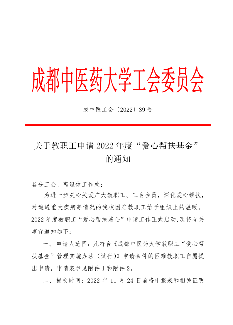 2022年爱心帮扶基金通知