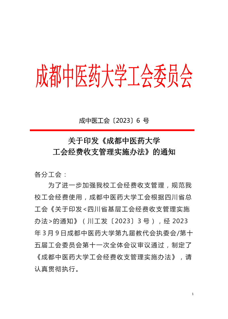 成中医工会[2023]6号《Beat365中文官方网站工会经费收支管理实施办法》的通知