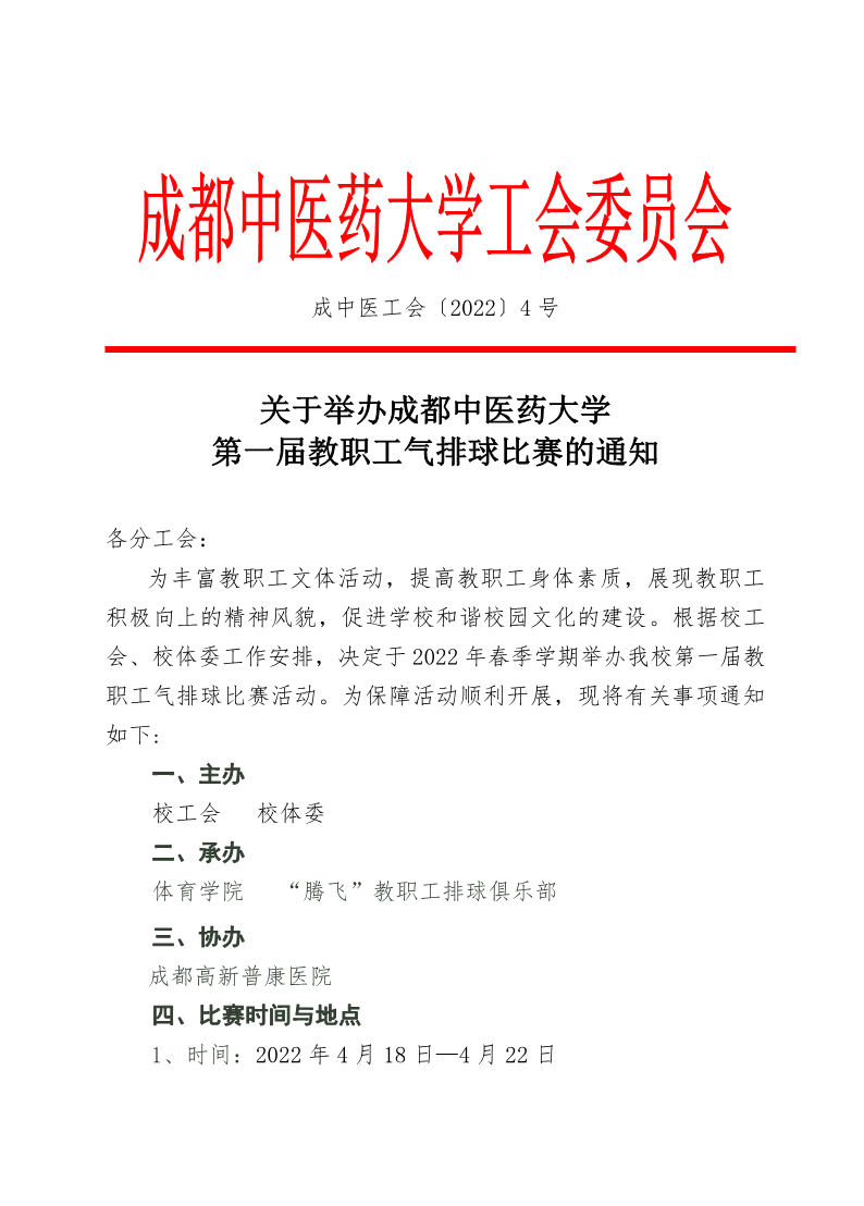 2022年第一届教职工气排球比赛的通知