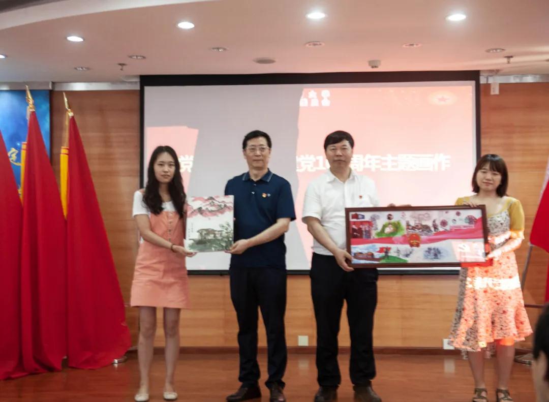 ▲不忘初心 · 牢记使命党员代表接收政治生命纪念卡 / 党员们赠送建党100周年主题画作