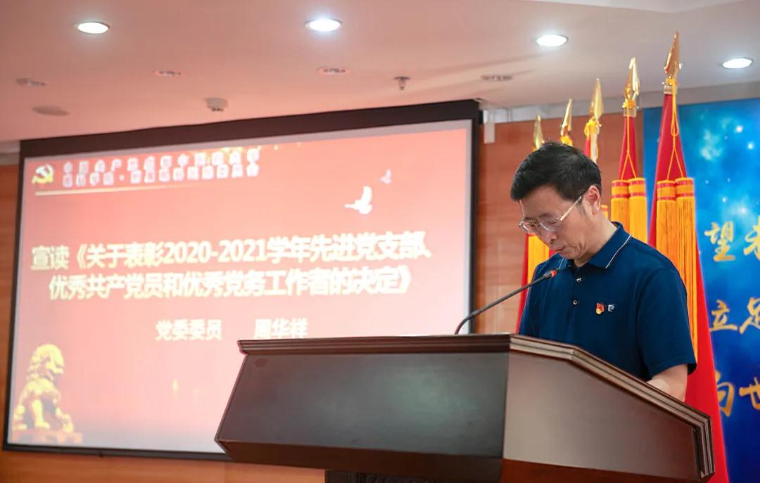 ▲中共Beat365中文官方网站眼科学院/附属眼科医院党委委员周华祥宣读《关于表彰2020-2021年度先进党支部、优秀共产党员和优秀党务工作者的决定》